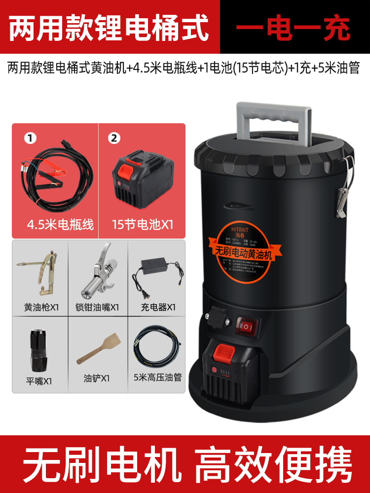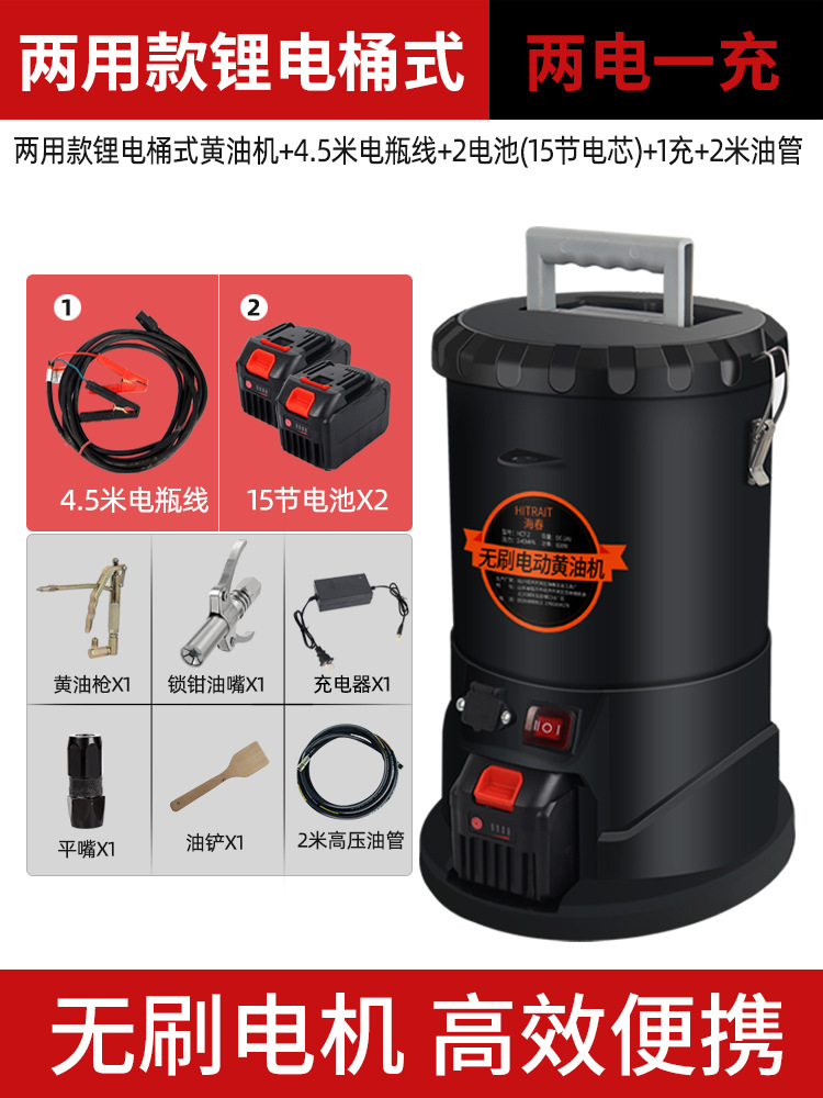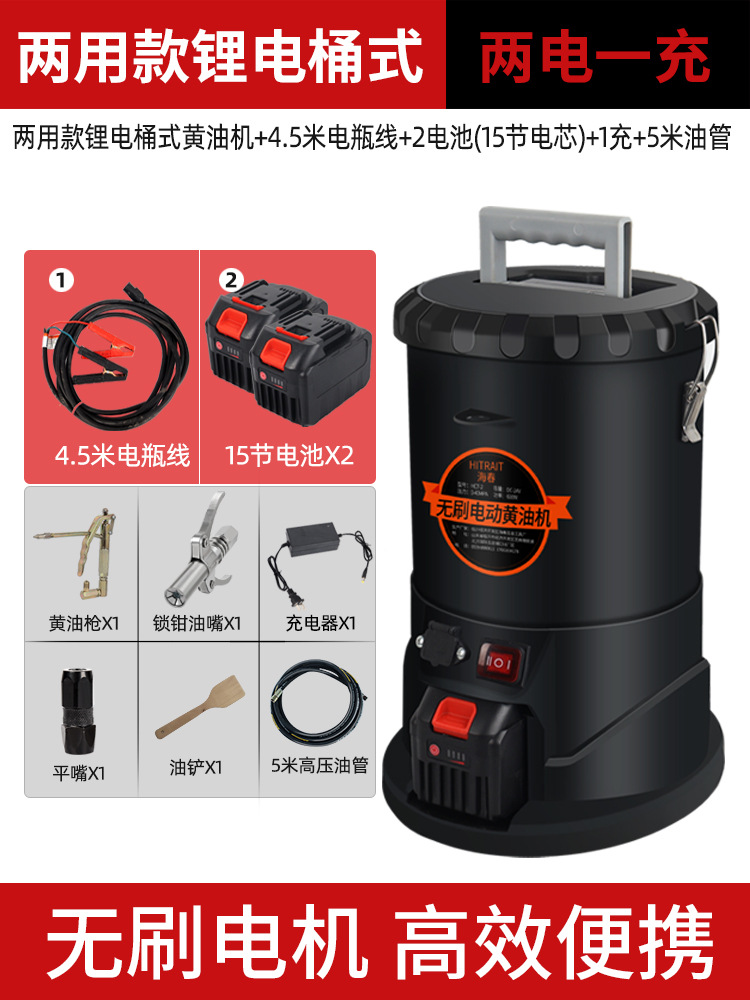 两用锂电黄油机桶式+4.5米电瓶线+1电池(15节电芯)+1充+2米油管