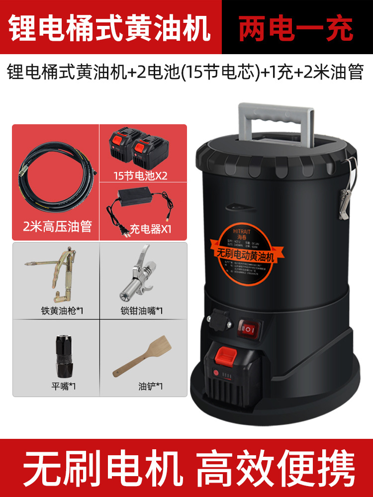 两用锂电黄油机桶式+5米高压管+4.5米电瓶线+2电池(15节电芯)+1充