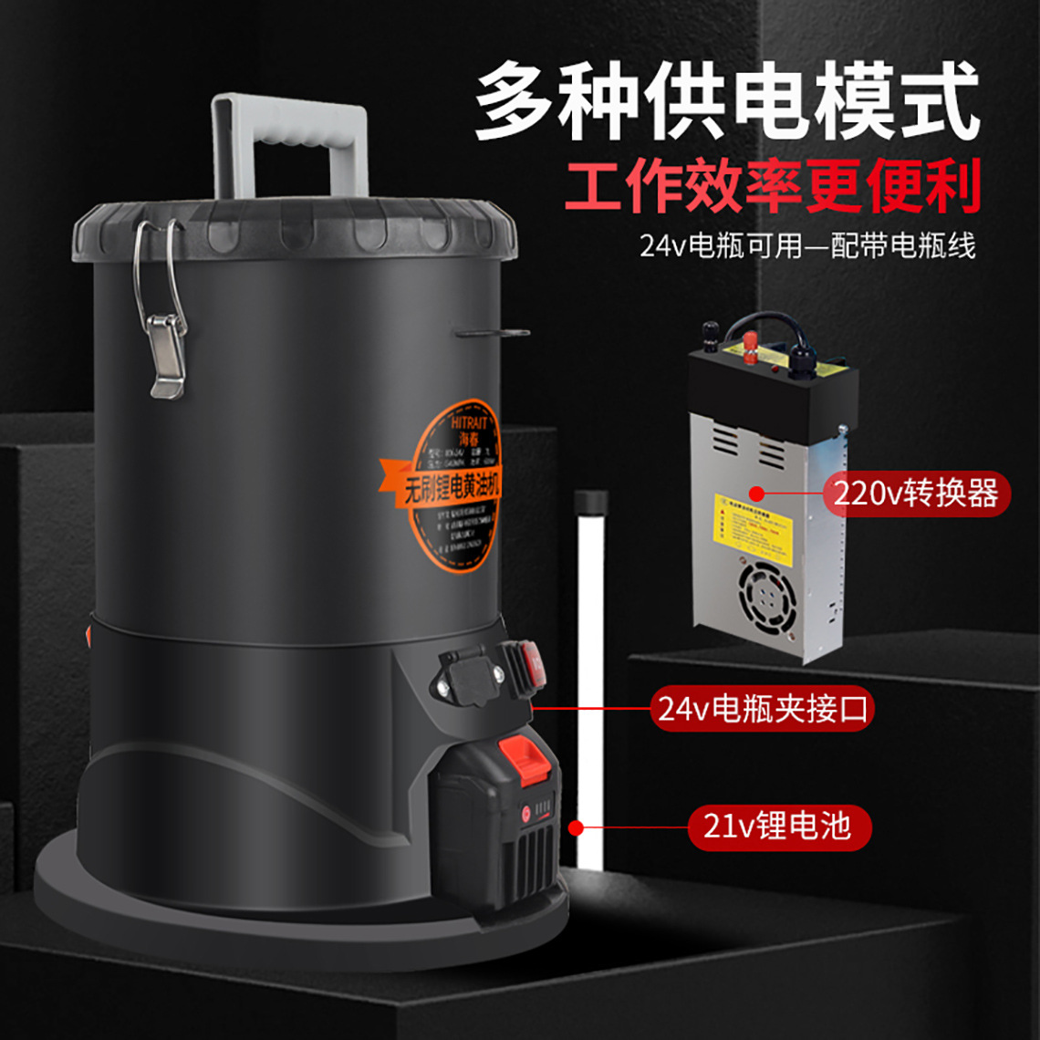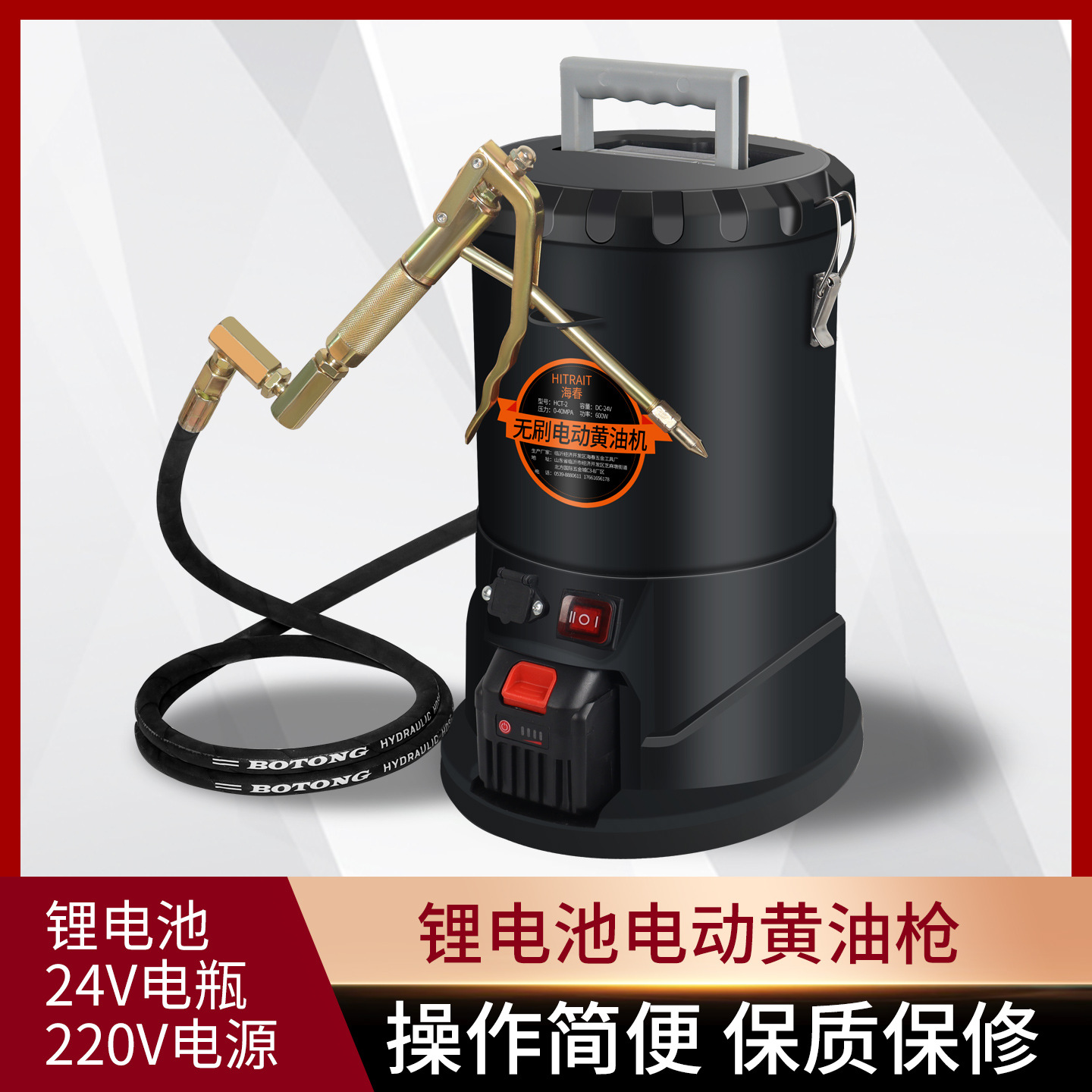三用锂电黄油机桶式+4.5米电瓶线+220v电源转换器+1电池+2米油管