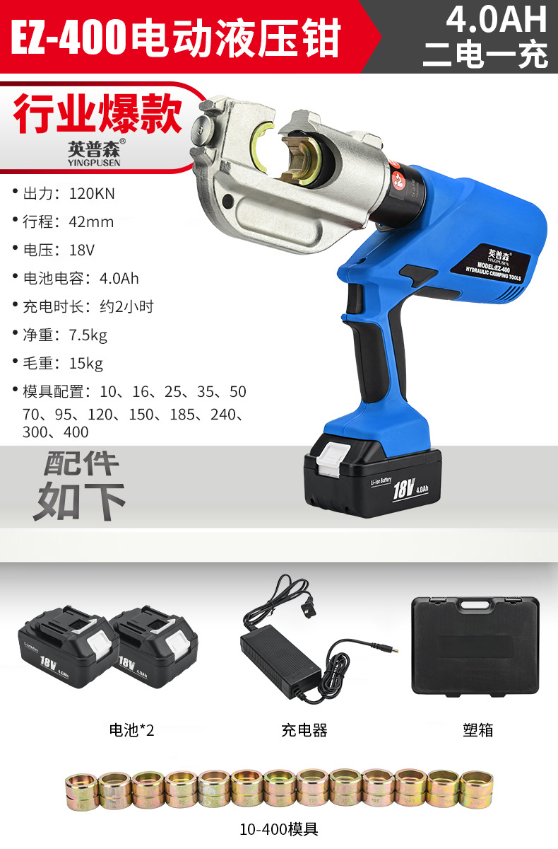 EZ-400蓝色电动液压钳 (行业爆款)10-400全套模具 CN¥ 2075.37