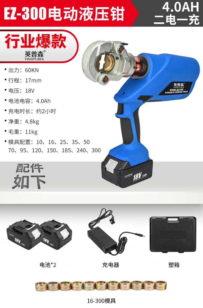 EZ-300蓝色电动液压钳 (行业爆款)10-300全套模具 CN¥ 1932.37