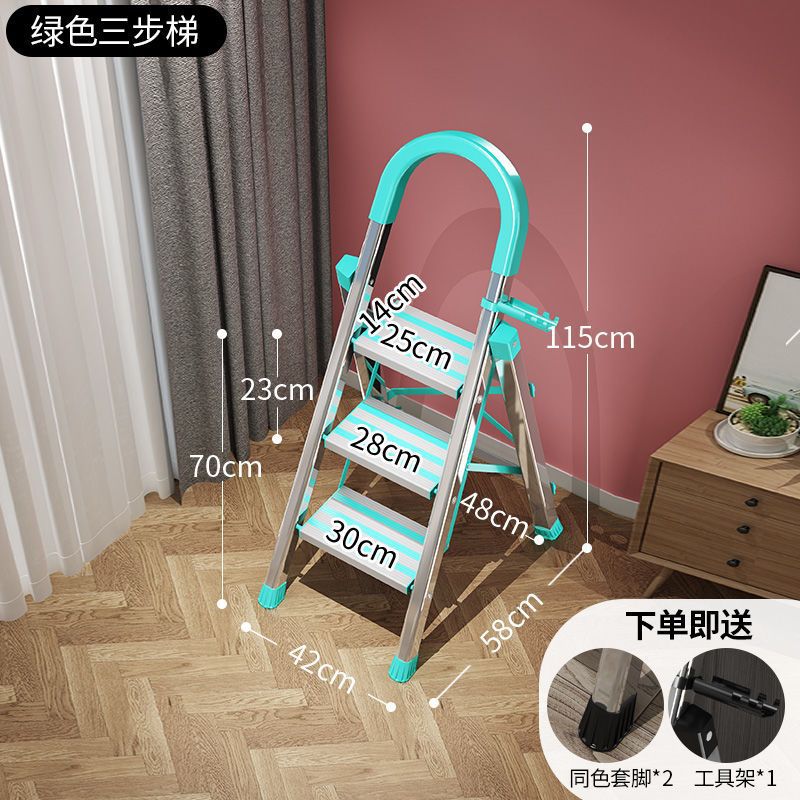 不锈钢升级加厚防滑-绿-三步梯♜♜