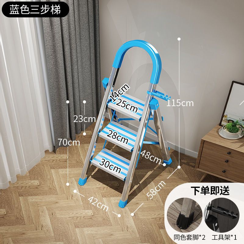 不锈钢升级加厚-蓝-三步梯♜♜