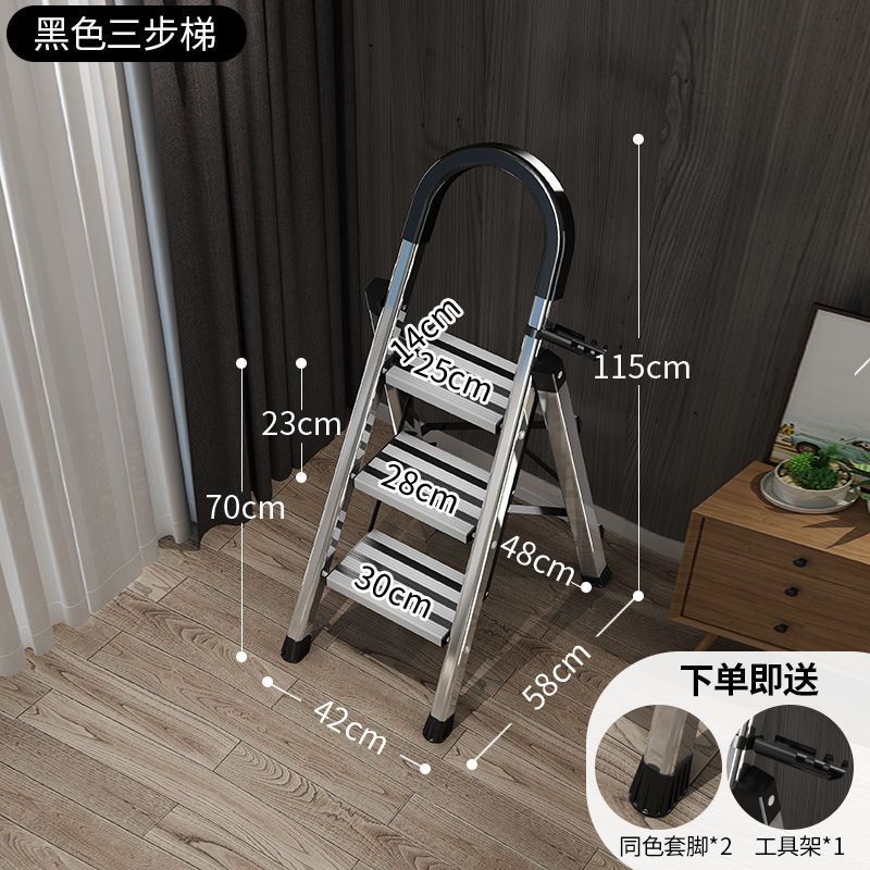 不锈钢升级加厚防滑-黑-三步梯♜♜