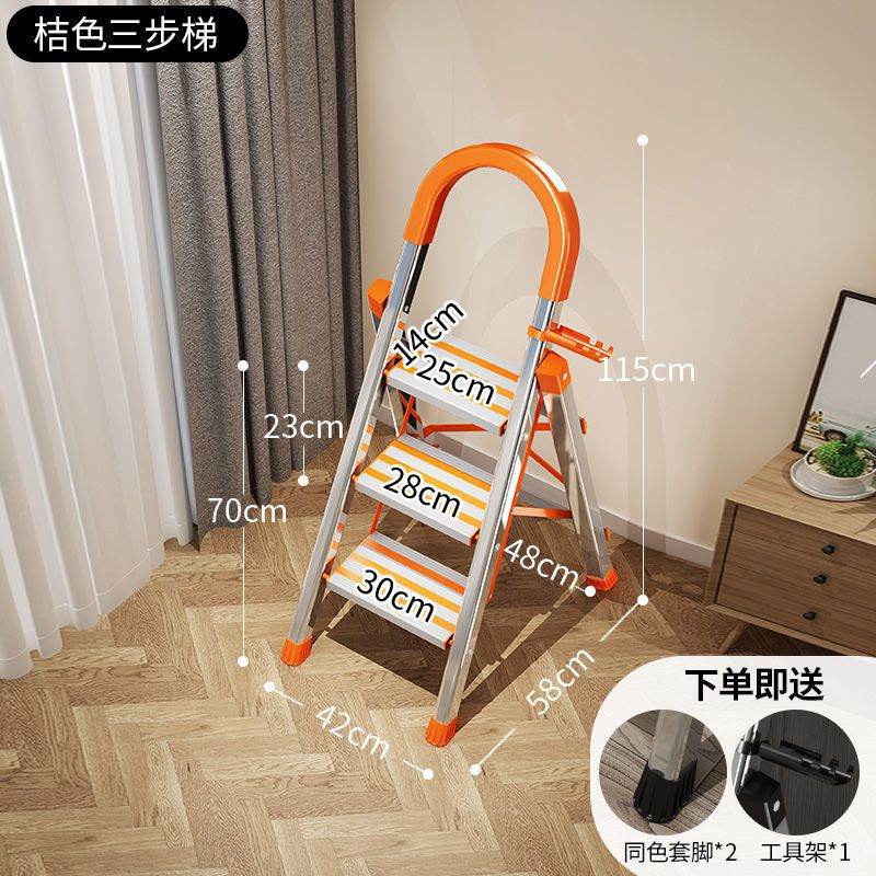 不锈钢升级加厚防滑-橙-三步梯♜♜
