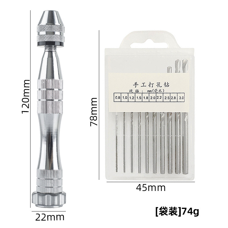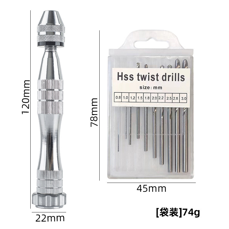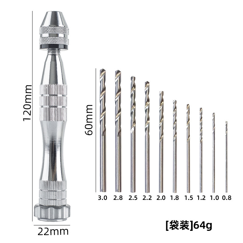 银色大号手捻钻+10pcs麻花钻[0.8-3.0]袋装