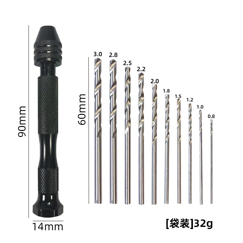 黑色手捻钻+10pcs麻花钻0.8-3.0[袋装]32g