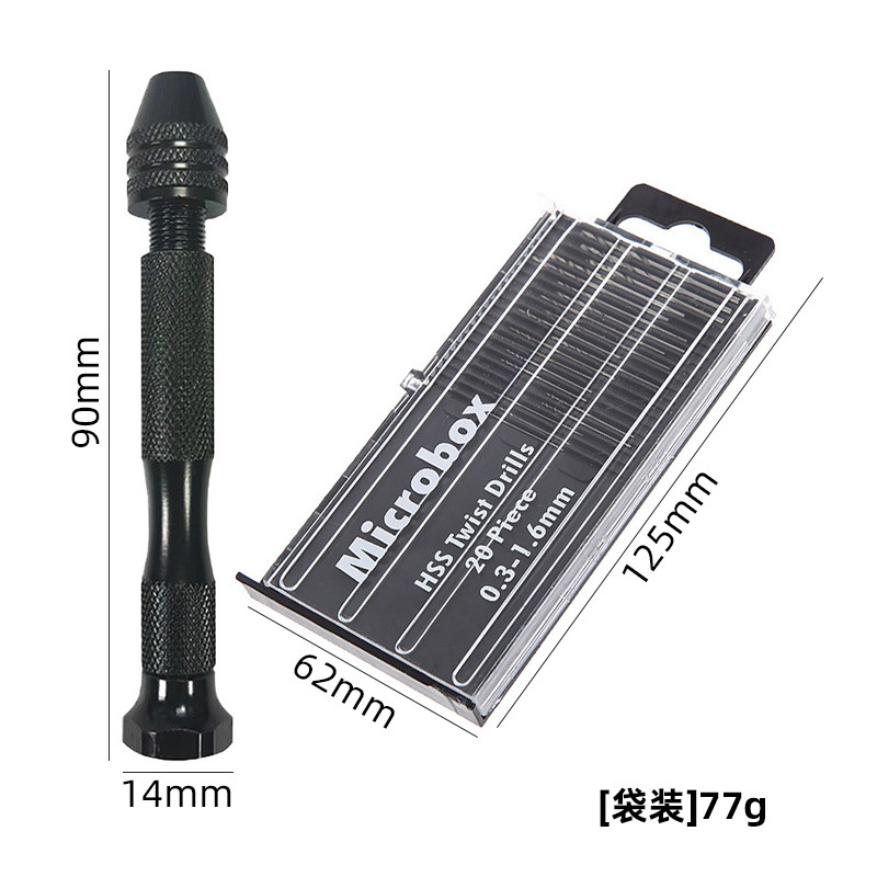 黑色手捻钻+20pcs麻花钻黑塑盒[袋装]77g
