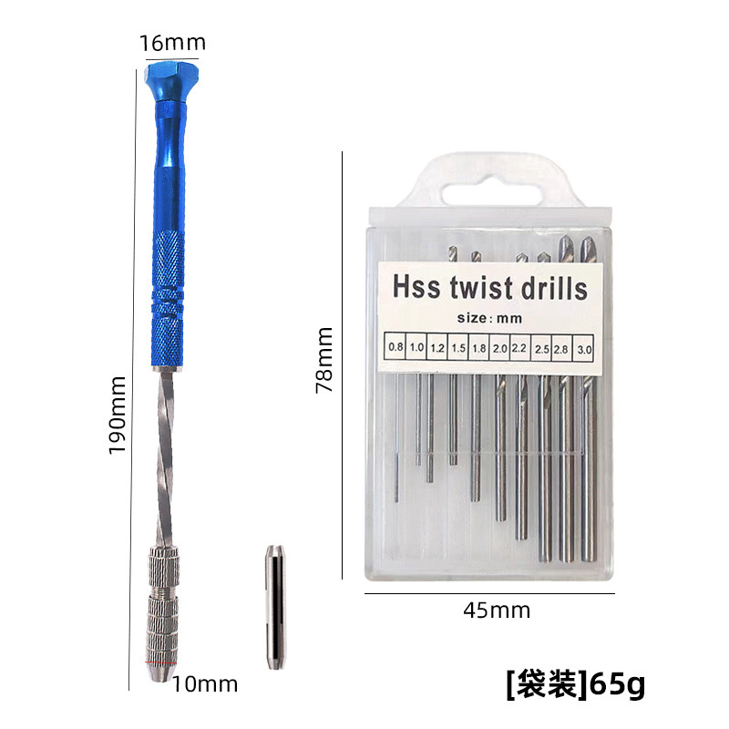 (蓝色手捻钻+10pcs麻花钻0.8-3.0中文塑盒)