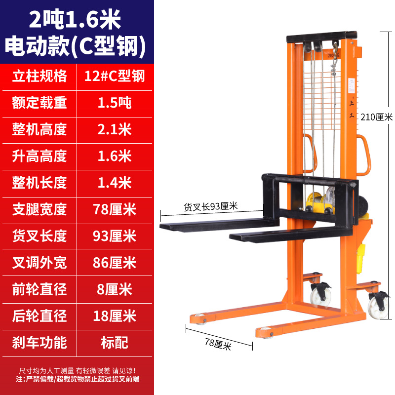出口型+电动2吨1.6米+六年质保 【C型钢】