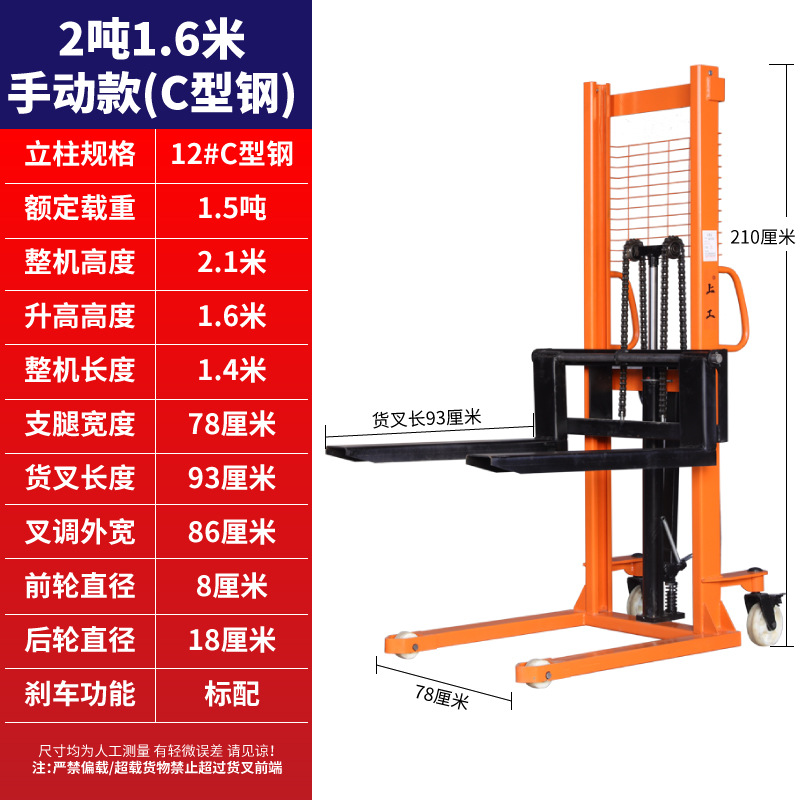 出口型+手动2吨1.6米+六年质保 【C型钢】