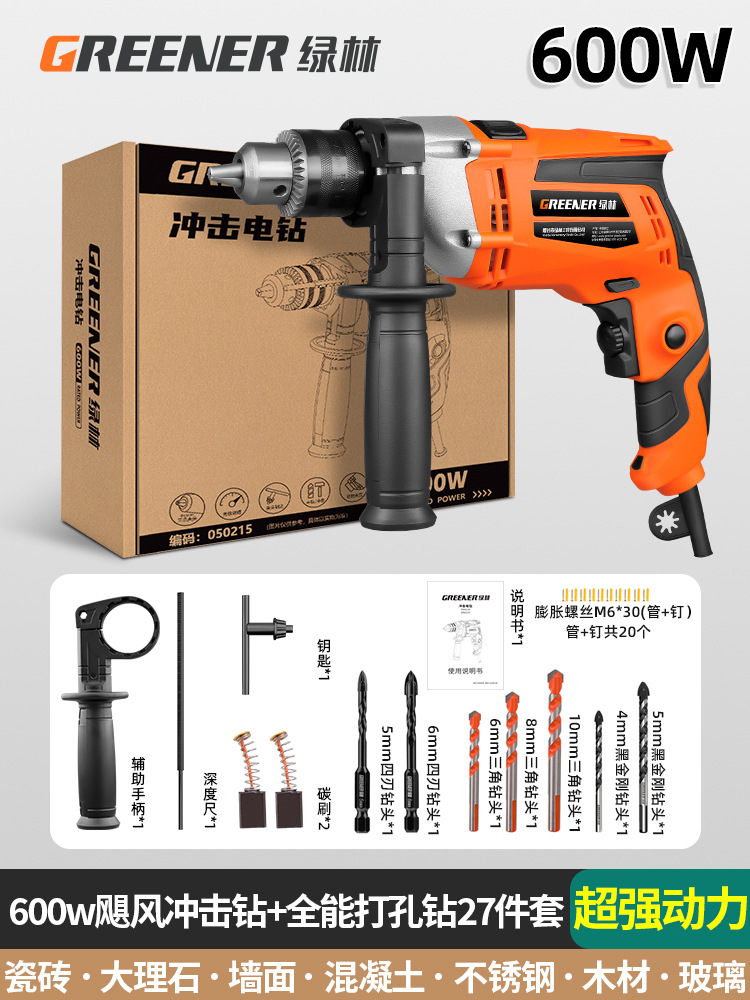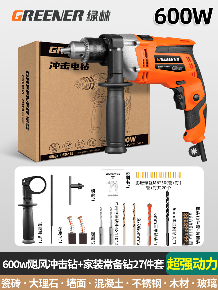 600w超强动力飓风冲击钻+家装常备钻27件套