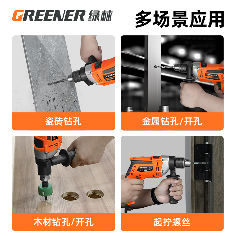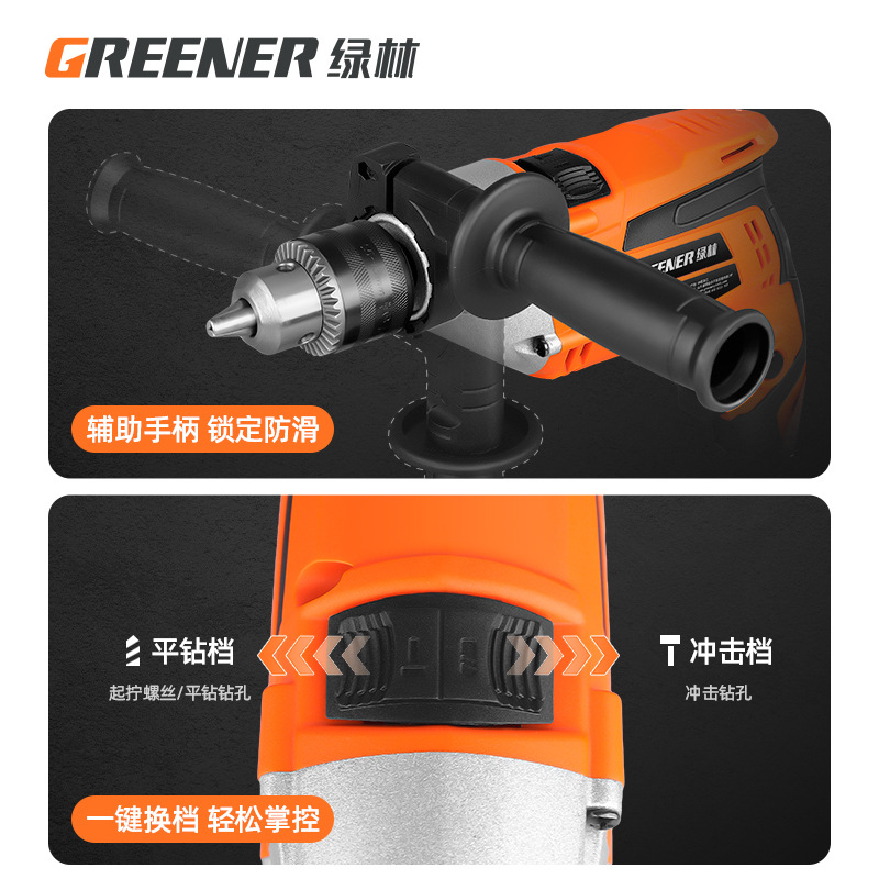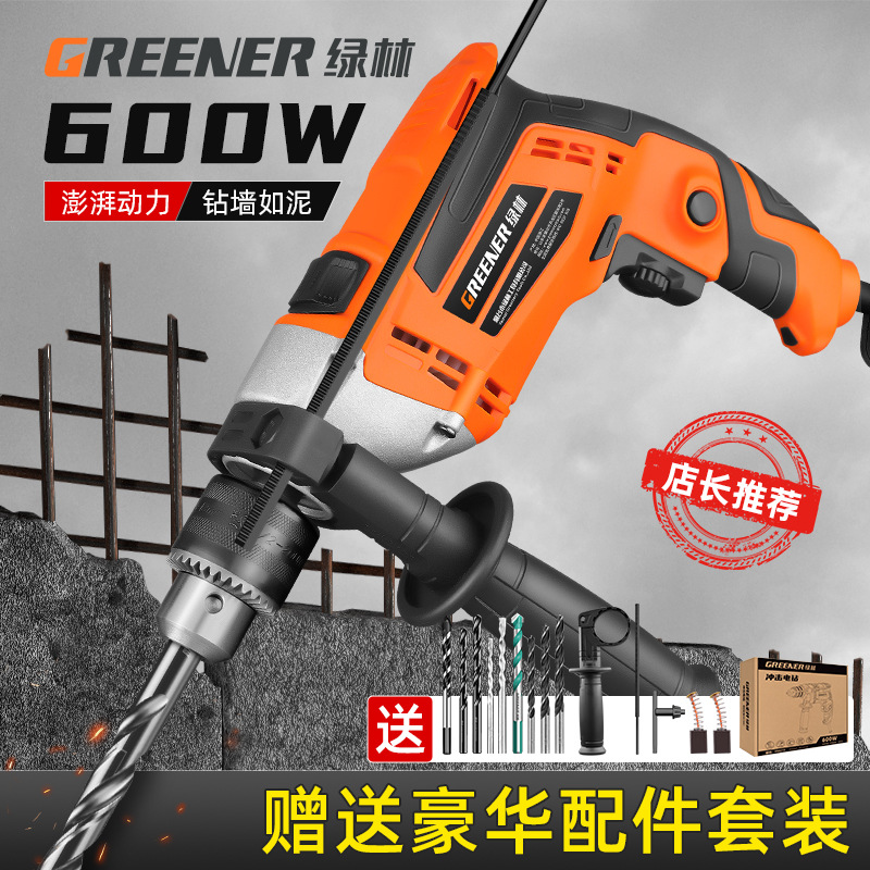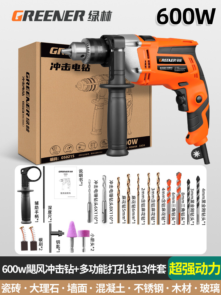 600w超强动力飓风冲击钻+多功能打孔钻13件套
