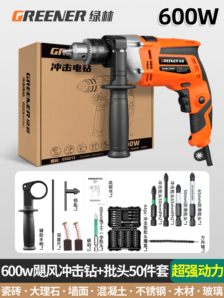 600w超强动力飓风冲击钻+批头50件套