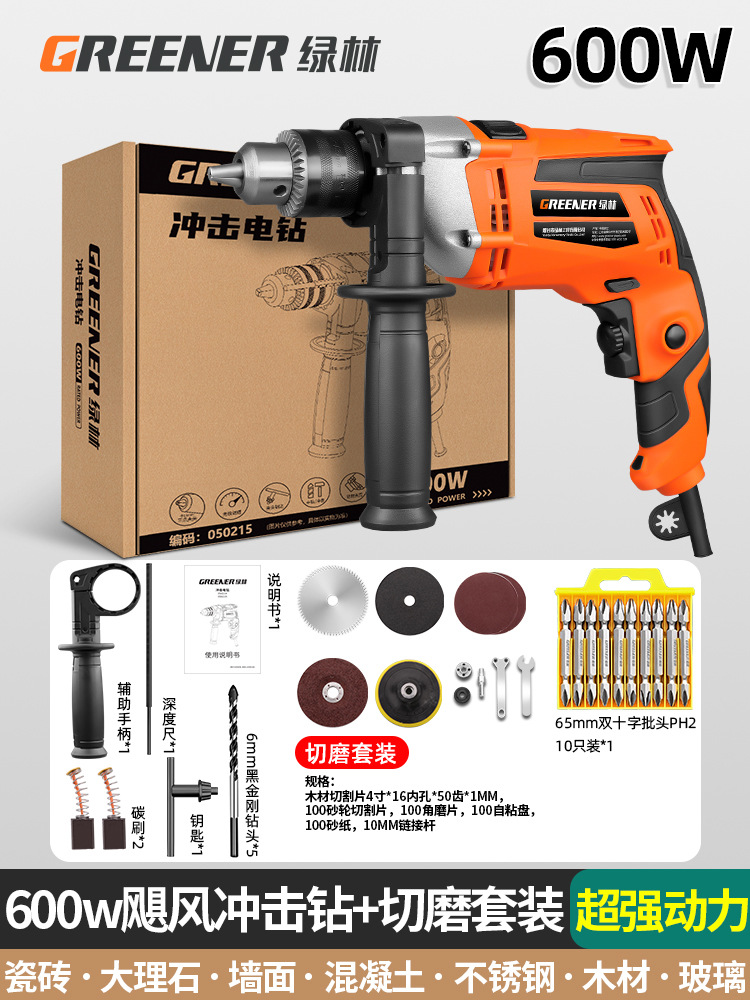 600w超强动力飓风冲击钻+切磨套装