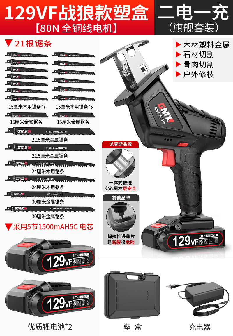 129VF战狼款【2电1充】(旗舰塑盒装)21锯条