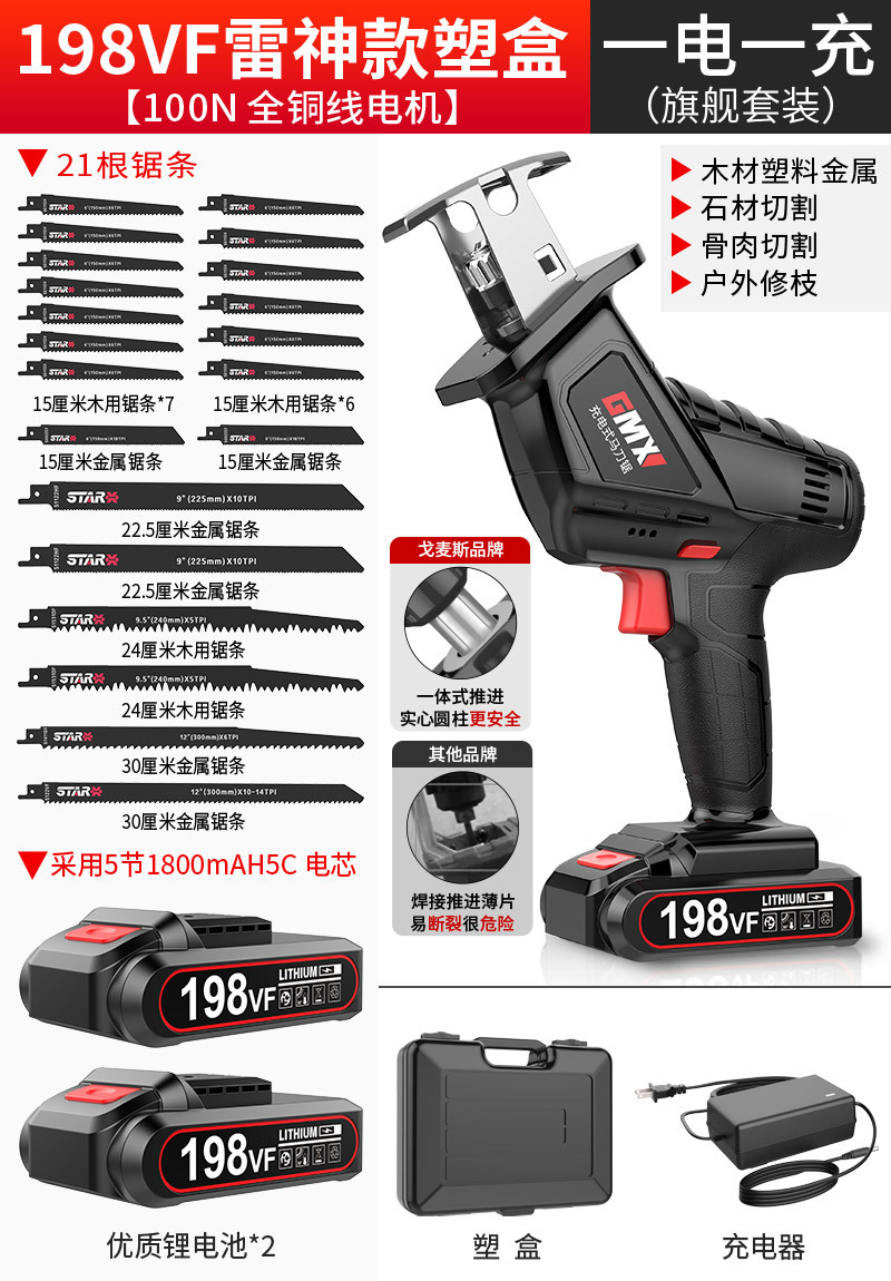 198VF雷【1电1充】(旗舰塑盒装)21锯条