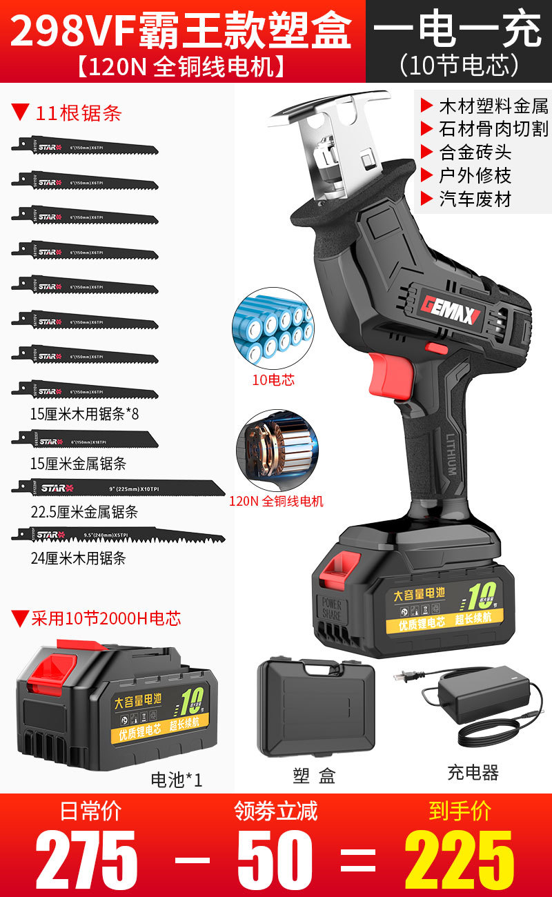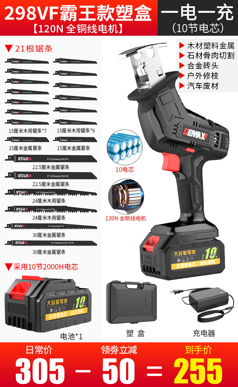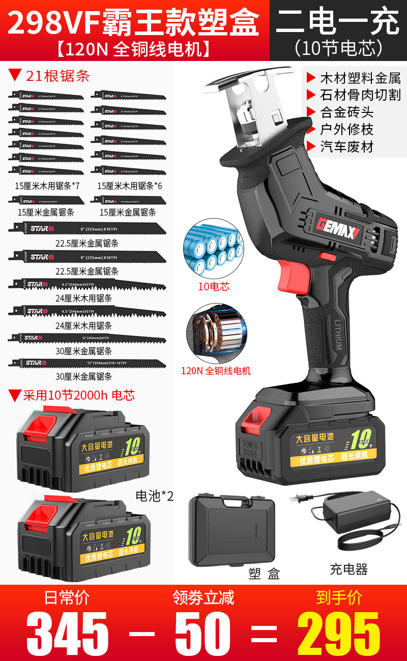 298VF霸王款【1电1充】(升级10电芯)11锯条