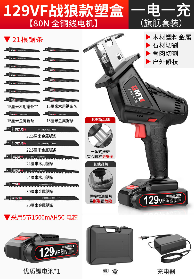 129VF战狼款【1电1充】(旗舰塑盒装)21锯条