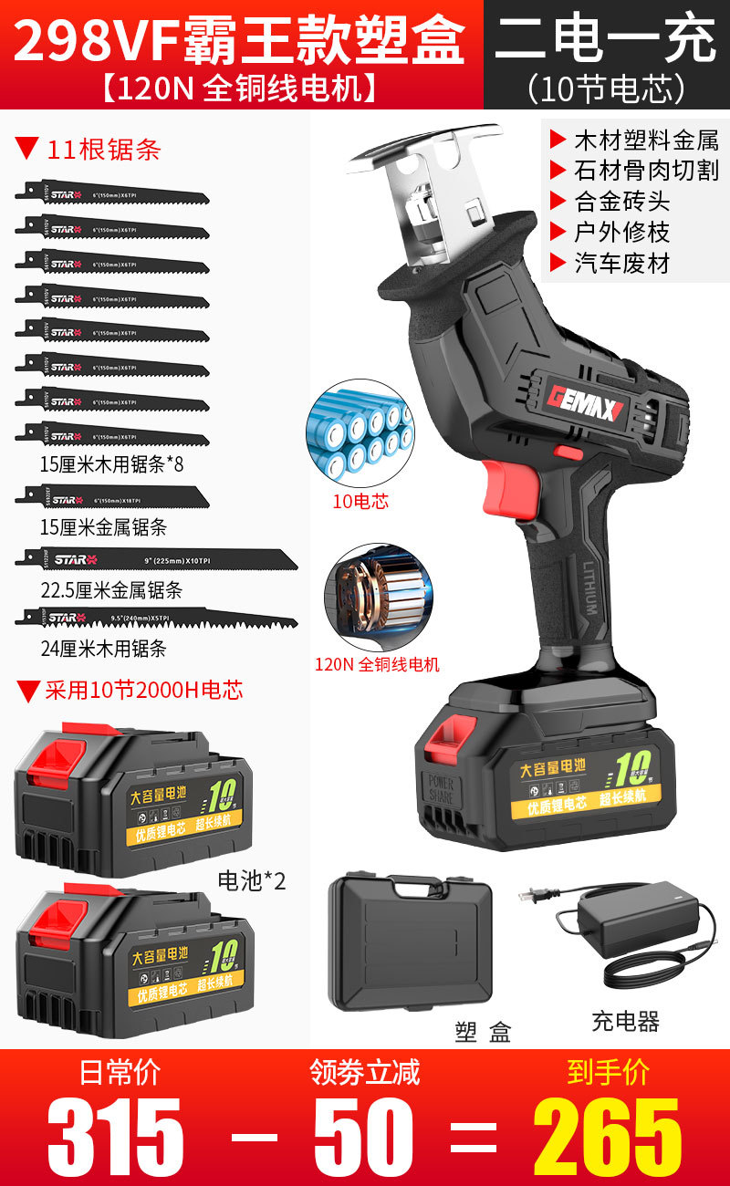 298VF霸王款【2电1充】(升级10电芯)11锯条
