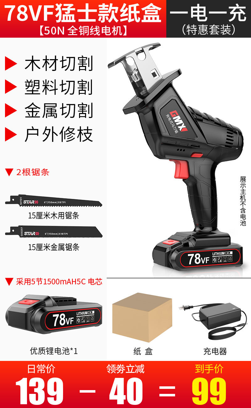 78VF猛士款【1电1充】(特惠纸盒装)2锯条