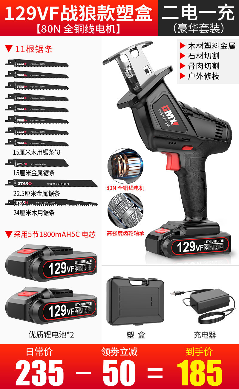 129VF战狼款【2电1充】(豪华塑盒装)11锯条