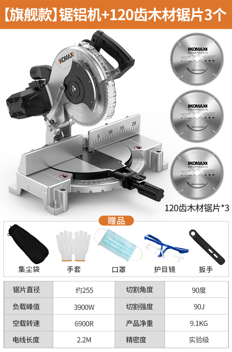 【旗舰款】锯铝机+120齿木材锯片3个+送礼包