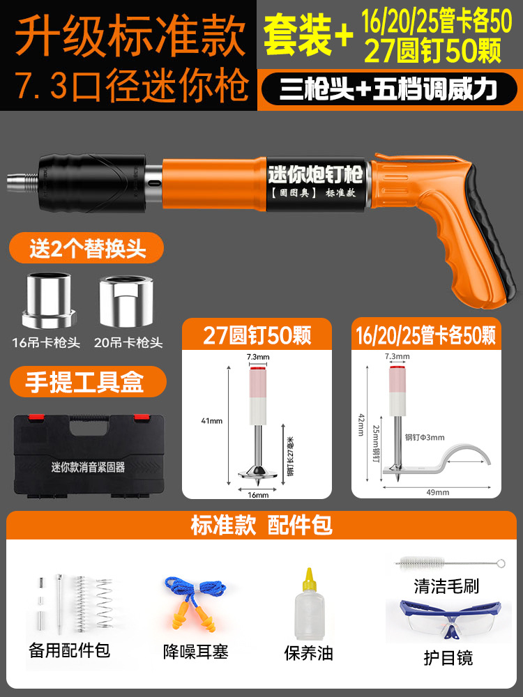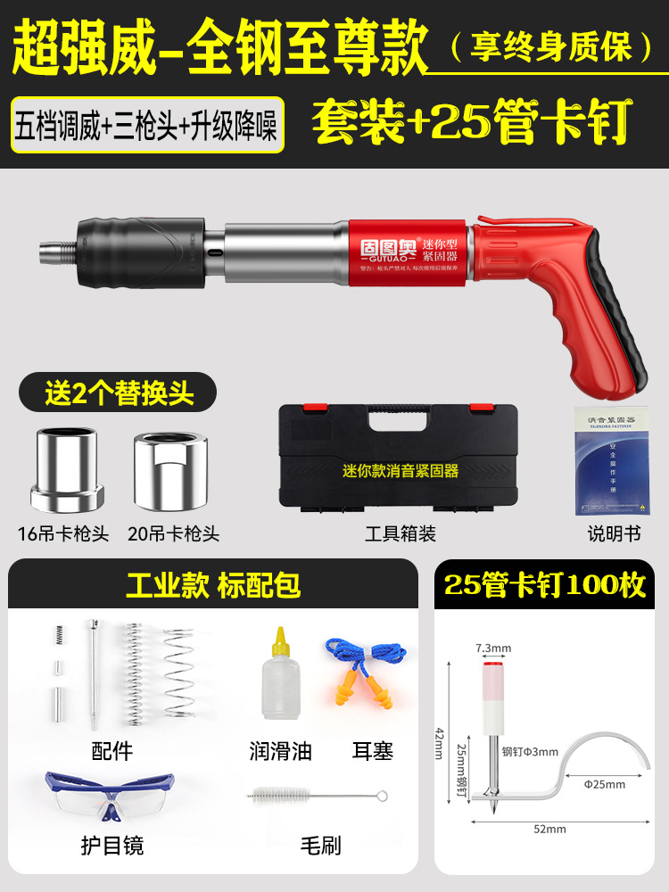 【全钢机身+工具箱】迷你枪+25mm管卡100颗 【三枪头+五档】