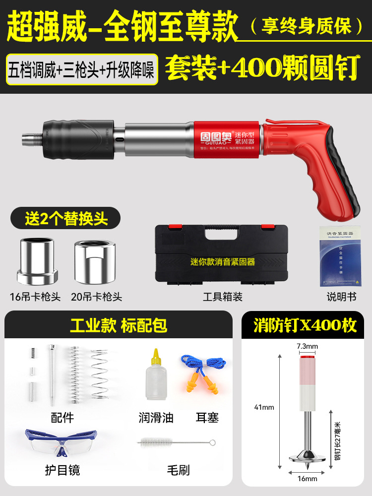 【全钢机身+工具箱】迷你枪+400颗圆钉 【三枪头+五档】
