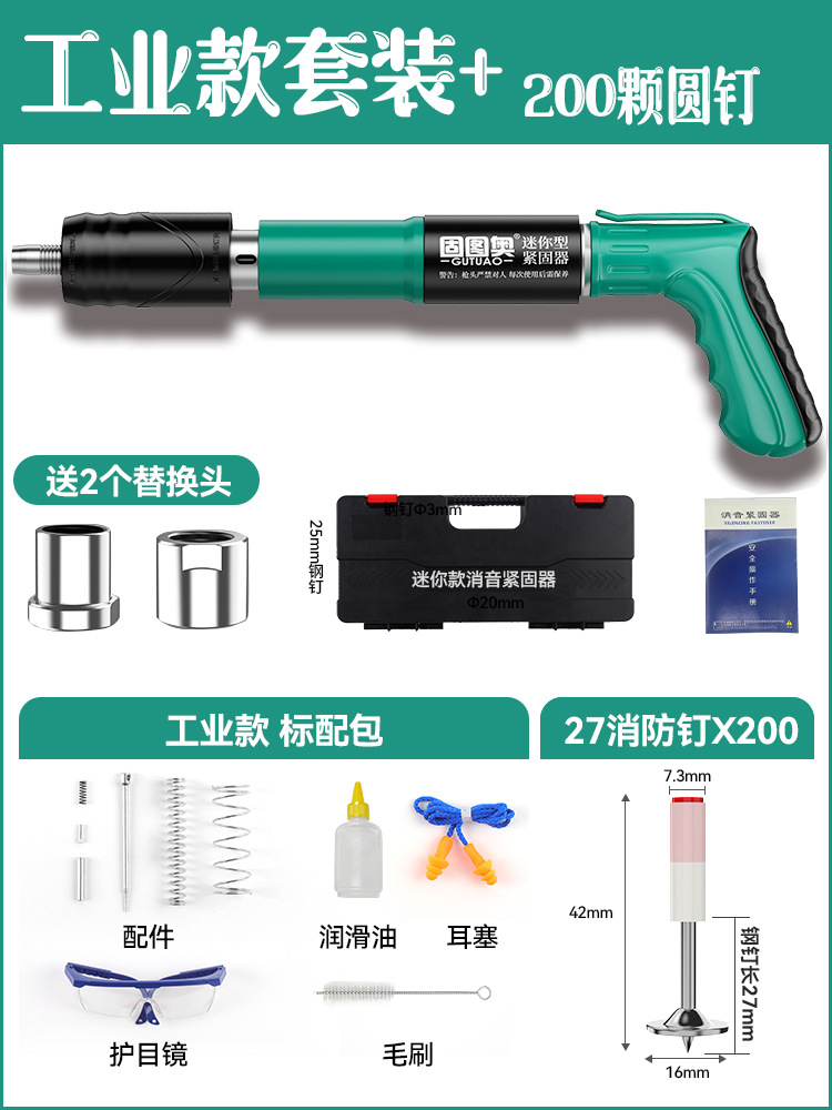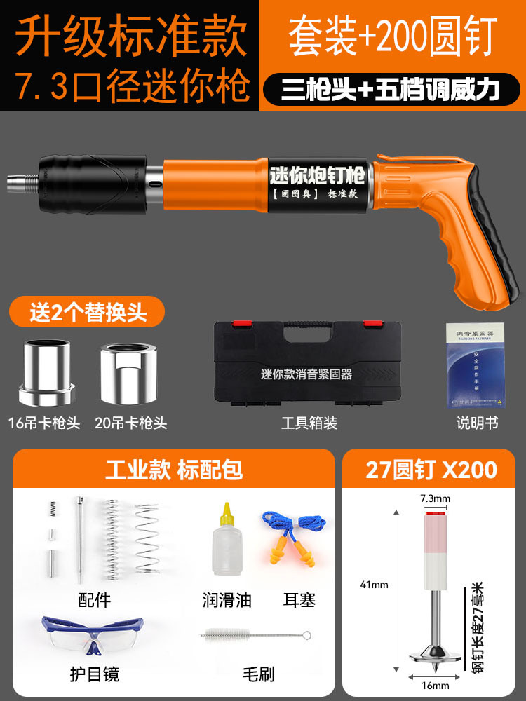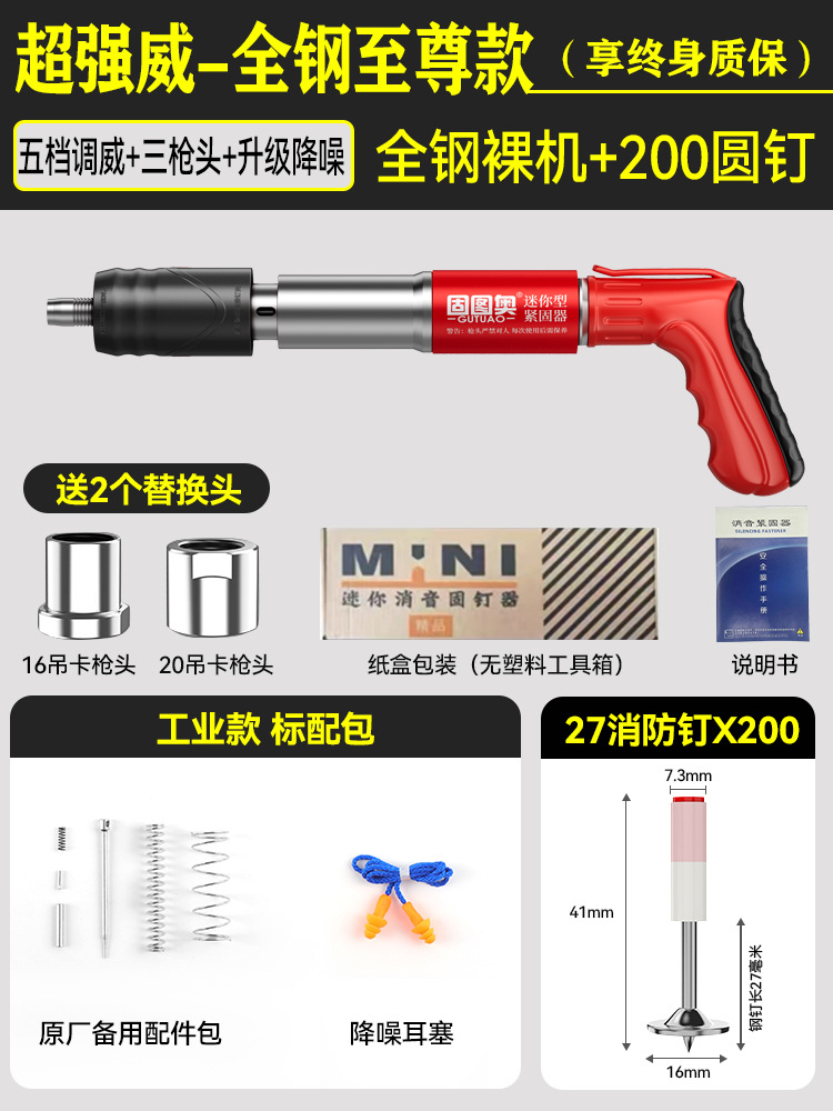 ★【全钢机身+工具箱】迷你枪+200颗圆钉 【三枪头+五档】