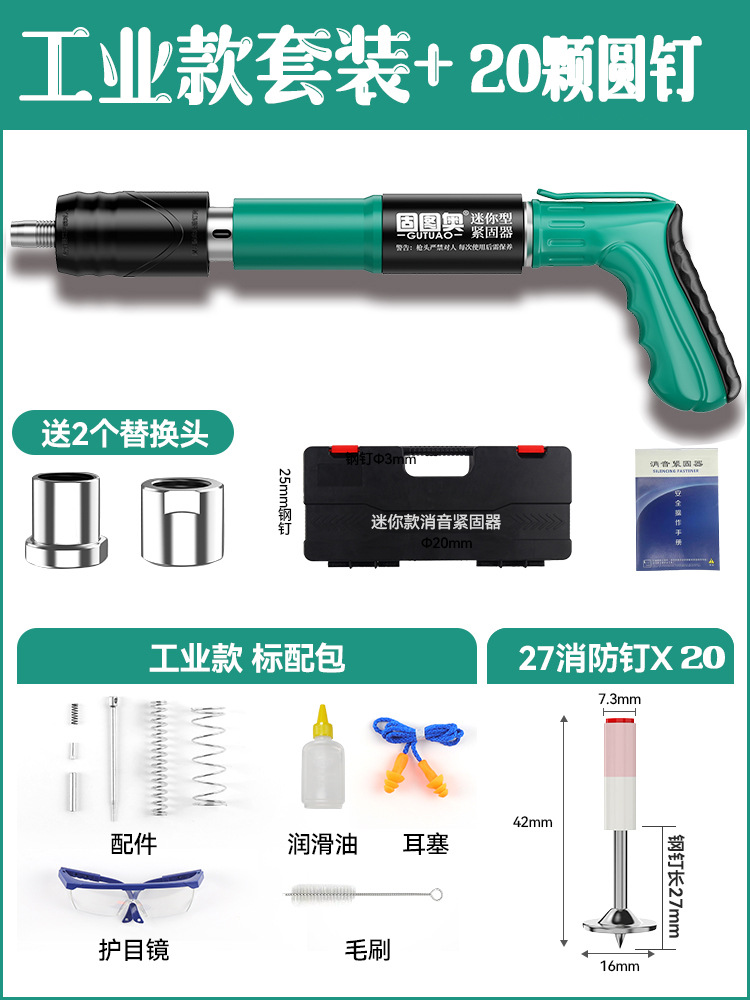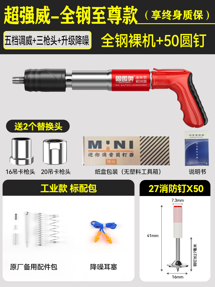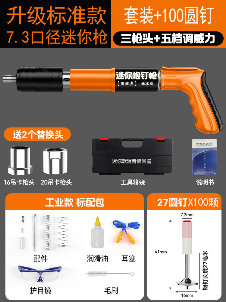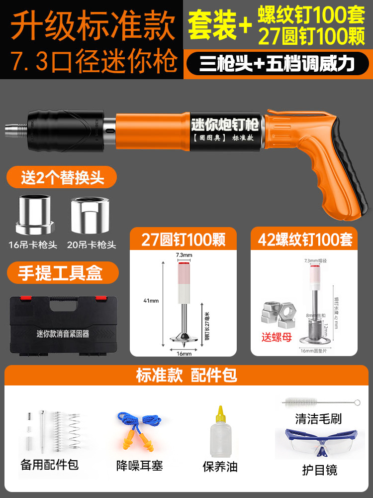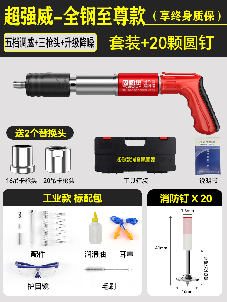 【全钢机身+工具箱】迷你枪+20枚圆钉 【三枪头+五档】