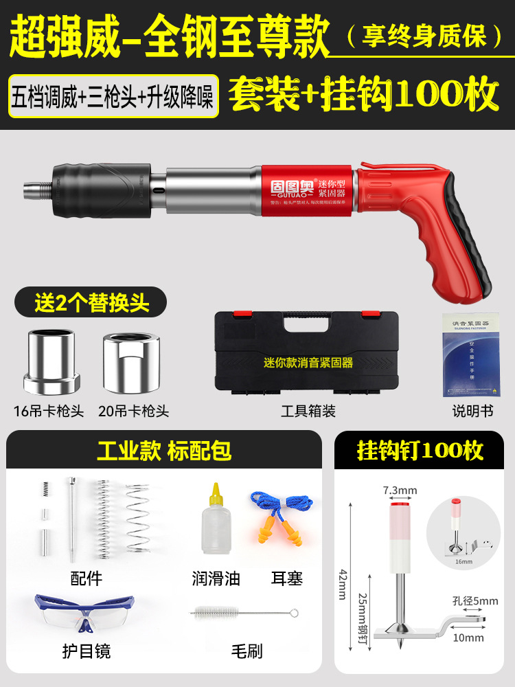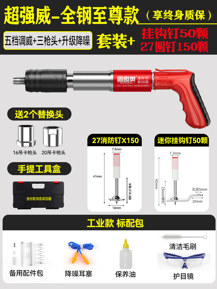 【全钢机身+工具箱】迷你枪+100枚挂钩钉 【三枪头+五档】