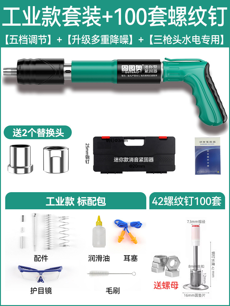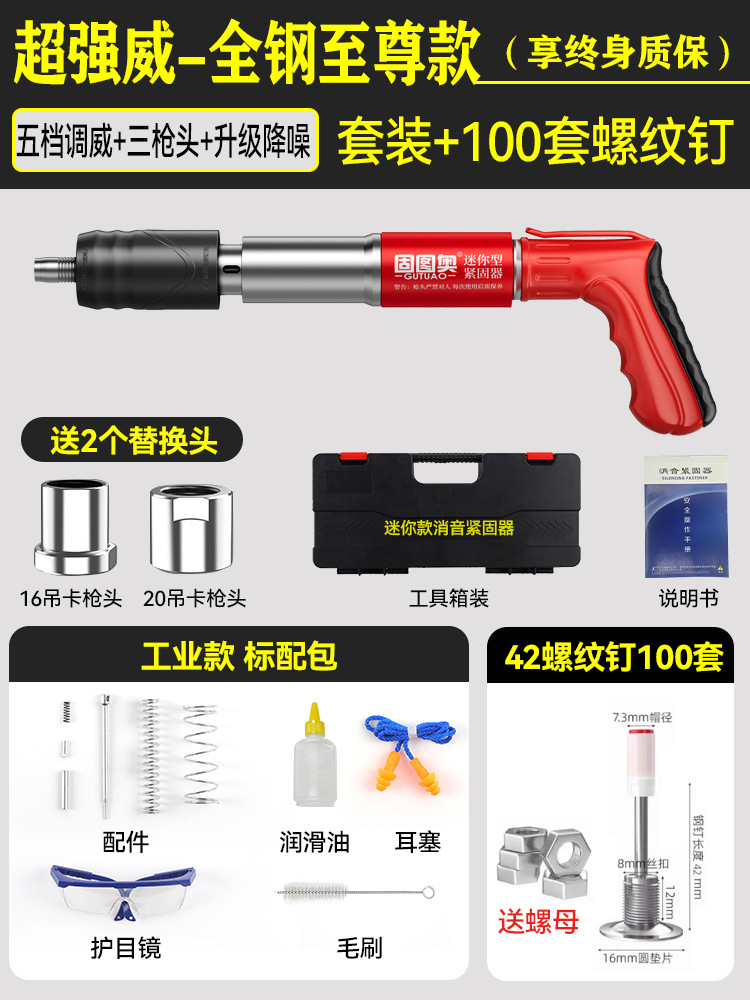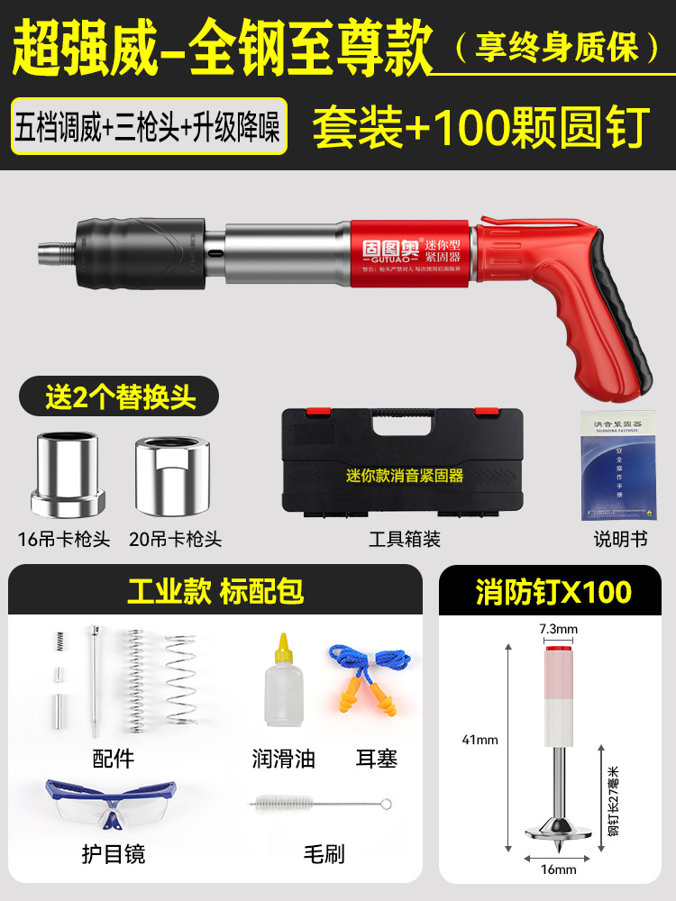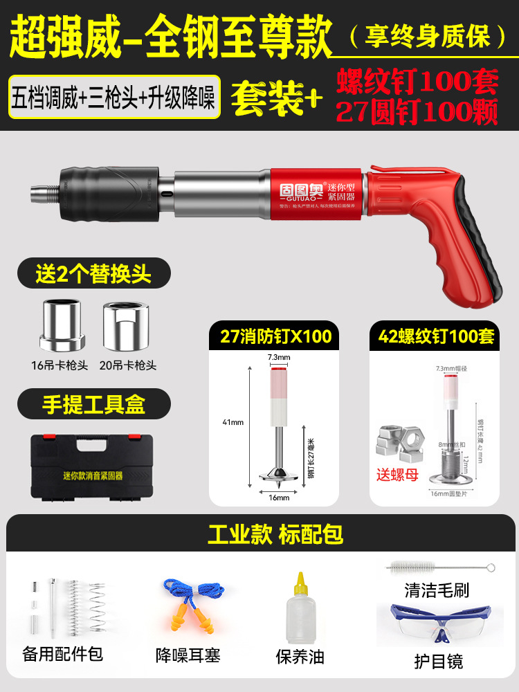 新【全钢机身+工具箱】+螺纹一体钉100套 【三枪头+五档】