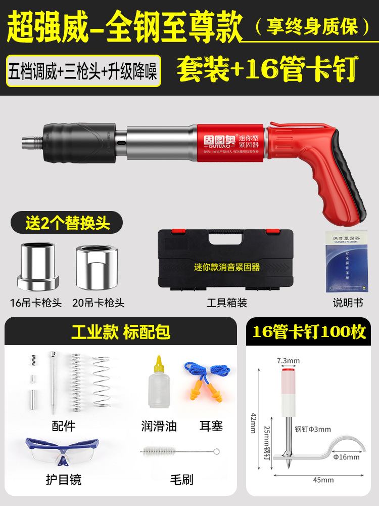 【全钢机身+工具箱】迷你枪+16mm管卡100颗 【三枪头+五档】
