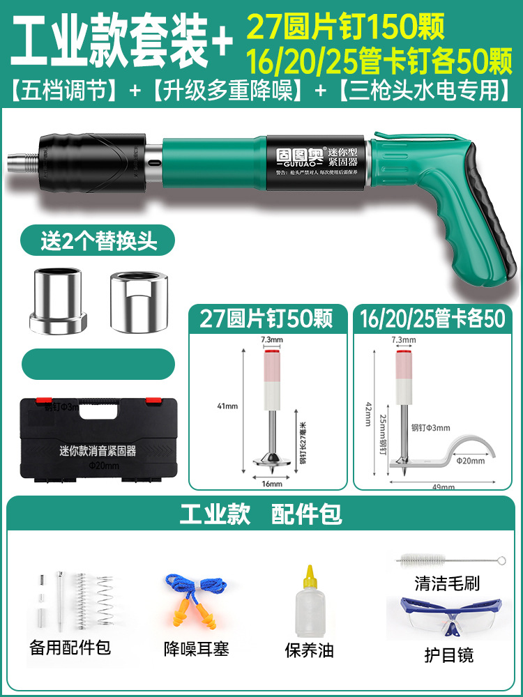 【工业款套装】+200钉(圆钉50颗+16/20/25管卡各50颗)