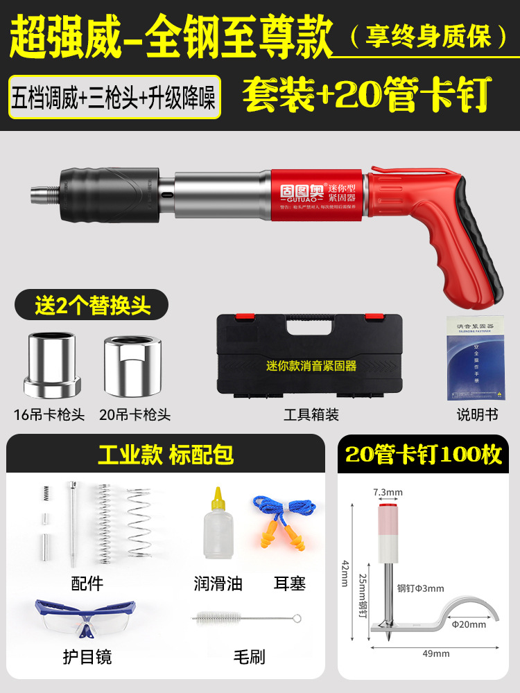 【全钢机身+工具箱】迷你枪+20mm管卡100颗 【三枪头+五档】