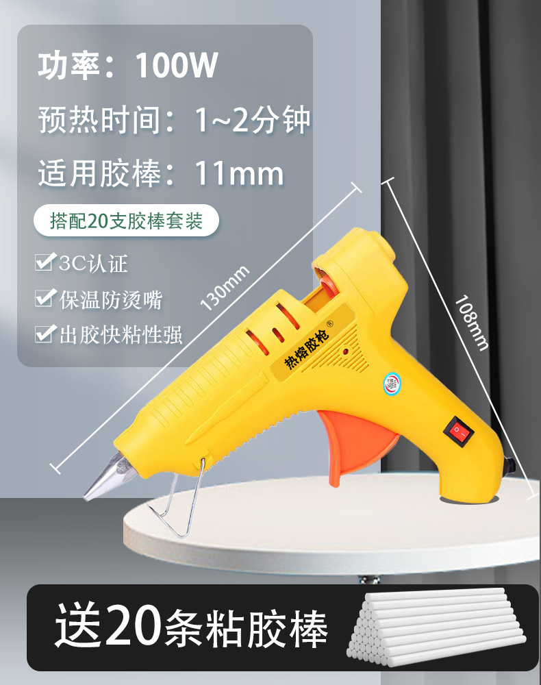 黄色100W升级版热熔胶枪+【20胶棒】