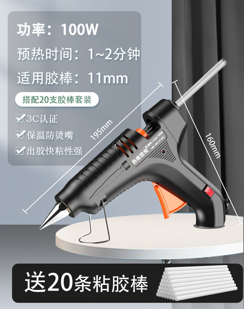 黑色100W升级版热熔胶枪+【20胶棒】