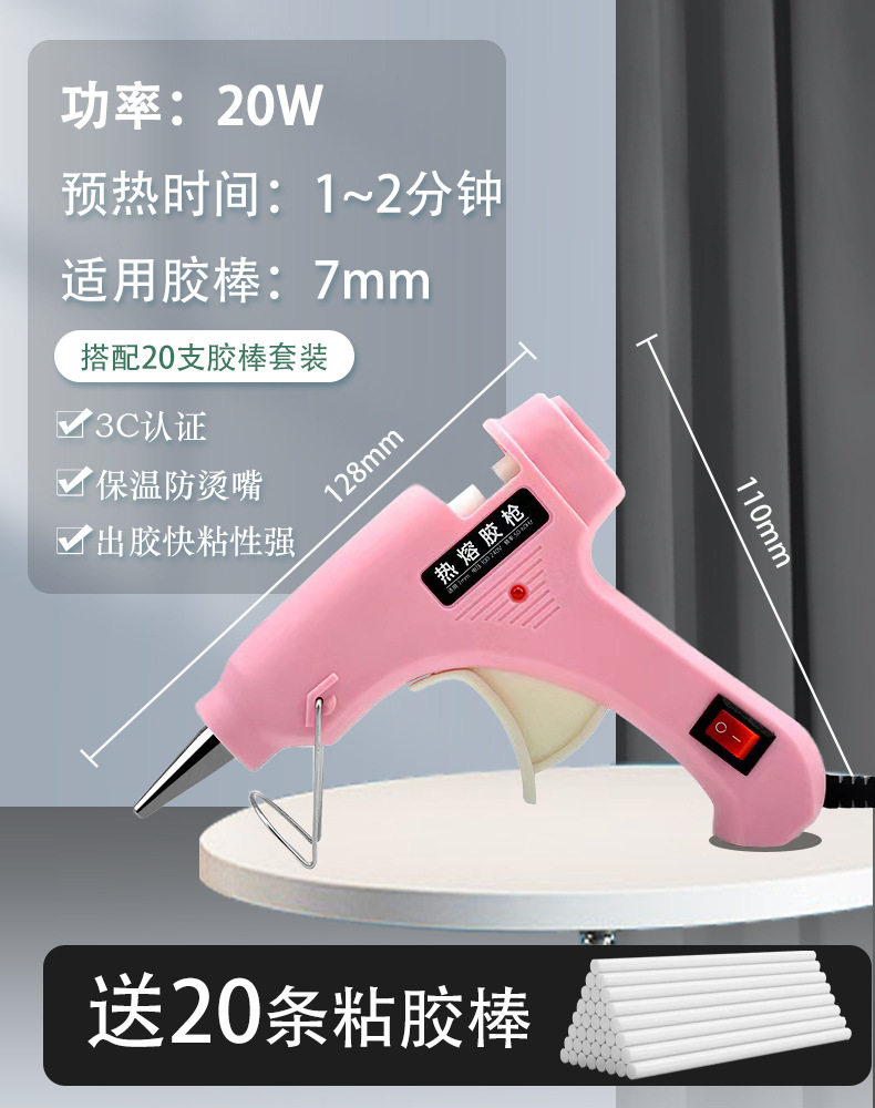粉色20W高配热熔胶枪+【20胶棒】