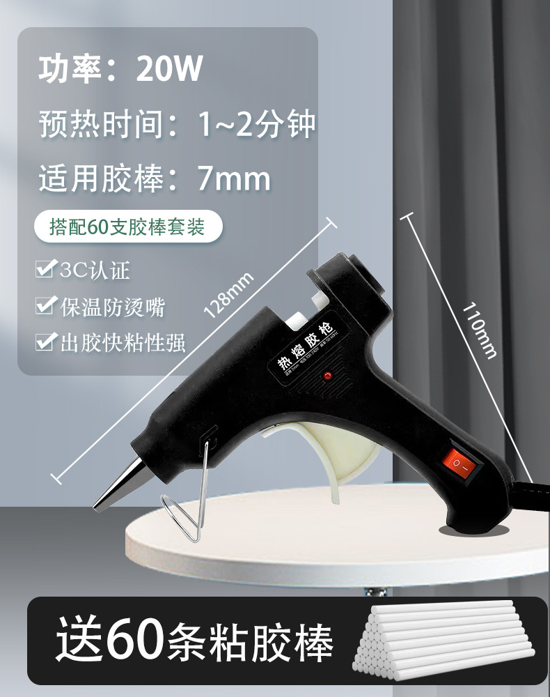 白色20W高配热熔胶枪+【60胶棒】