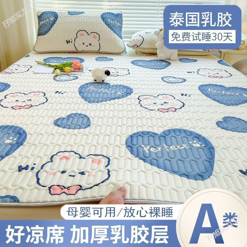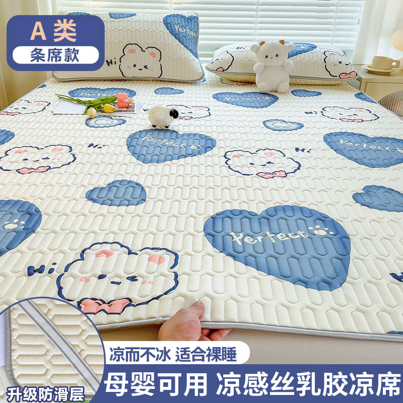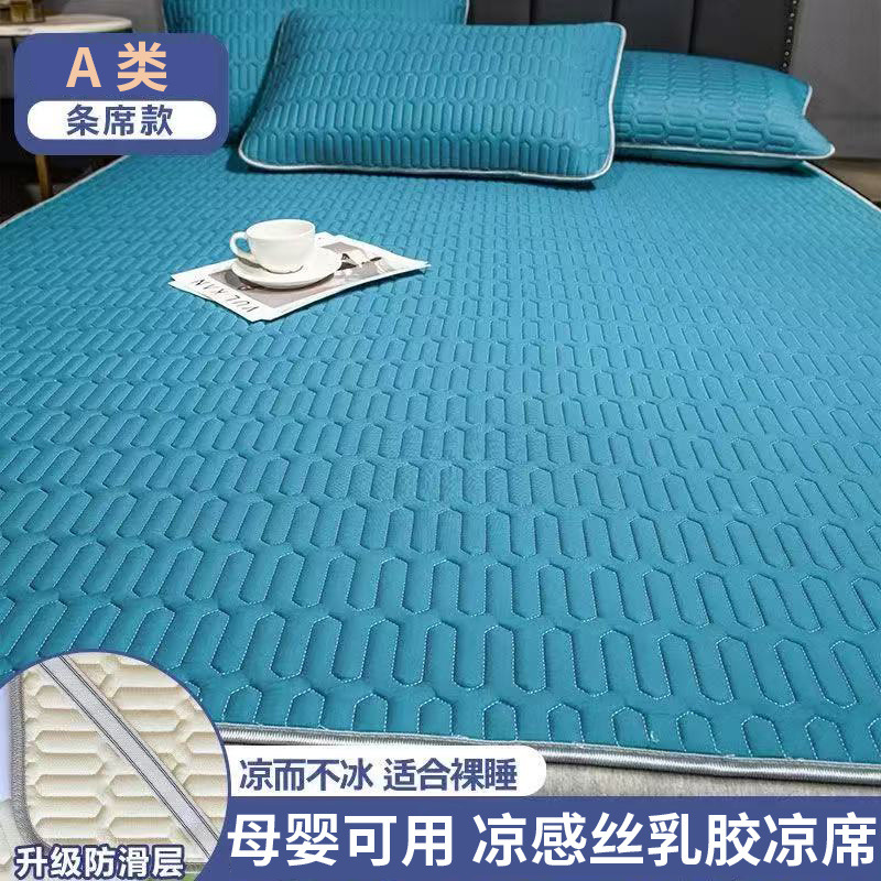 浅蓝色【加厚乳胶 加倍凉感】母婴可用-200*220cm【凉席+2只枕套】