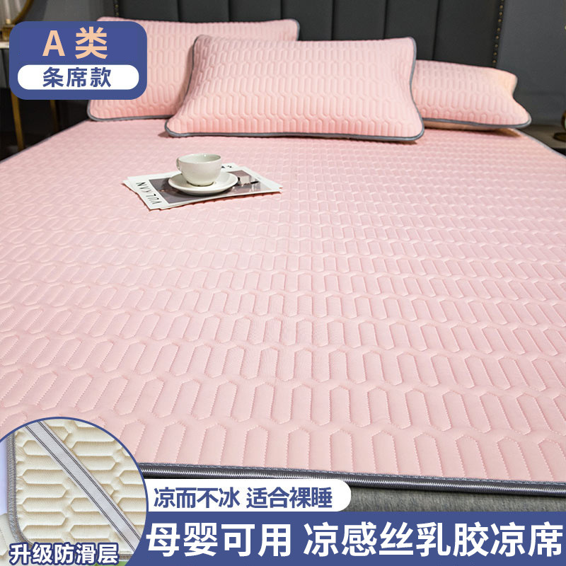 粉色【加厚乳胶 加倍凉感】母婴可用-200*220cm【凉席+2只枕套】