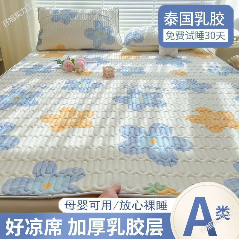 浅蓝色【加厚乳胶 加倍凉感】母婴可用-180*200cm【凉席+2只枕套】