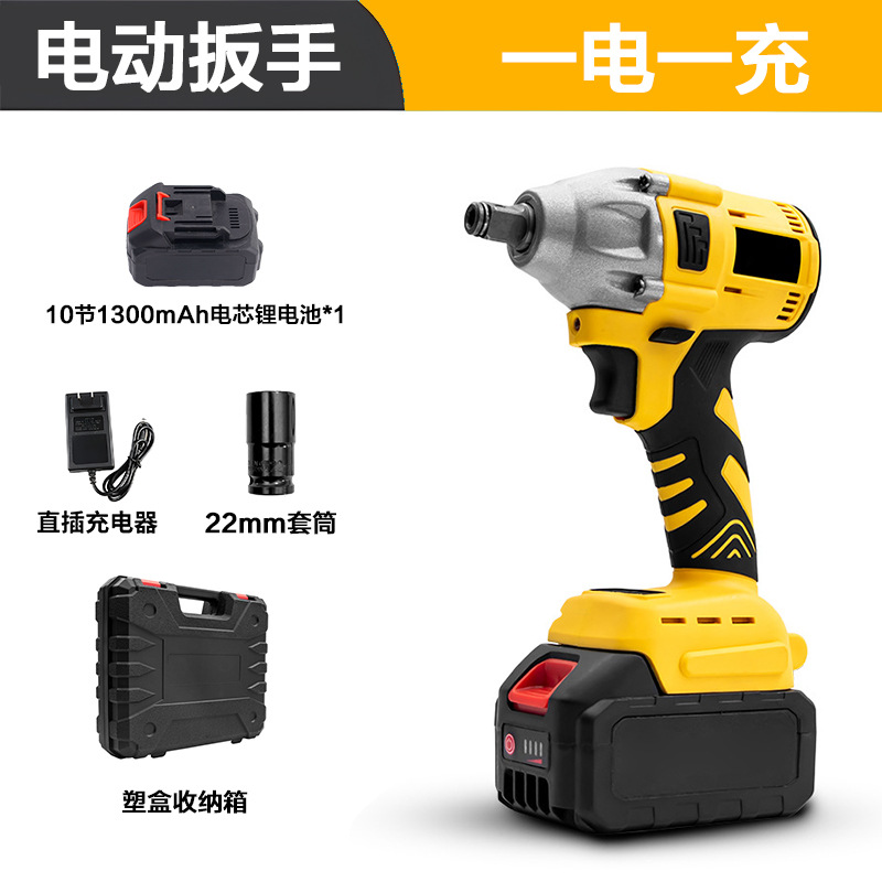 电动扳手黄色(包胶 10节电池+充电器+22MM套筒)
