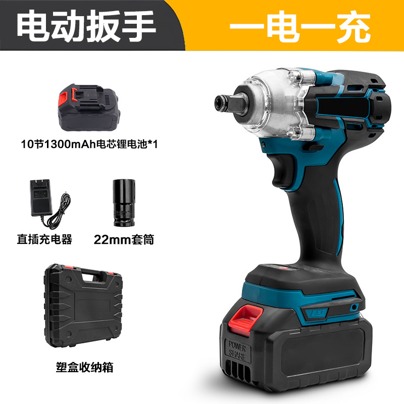 电动扳手蓝色(包胶 10节电池+充电器+22MM套筒)