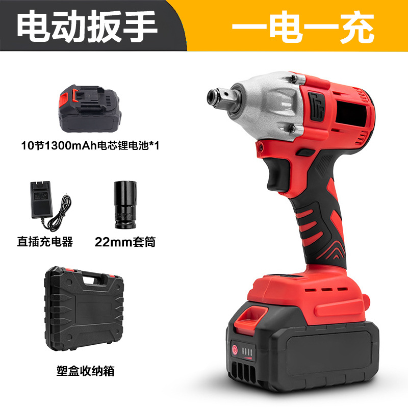 电动扳手红色(包胶 10节电池+充电器+22MM套筒)
