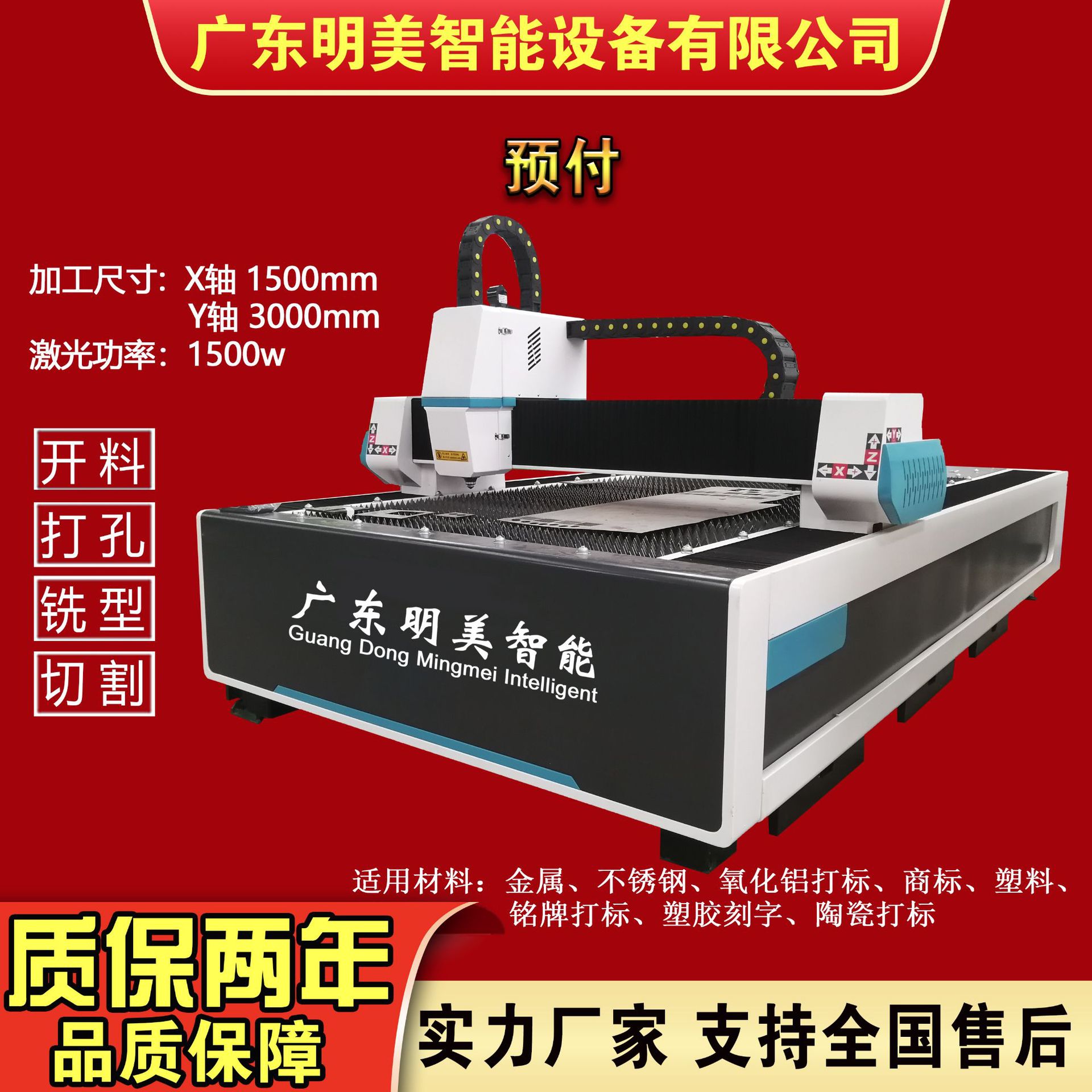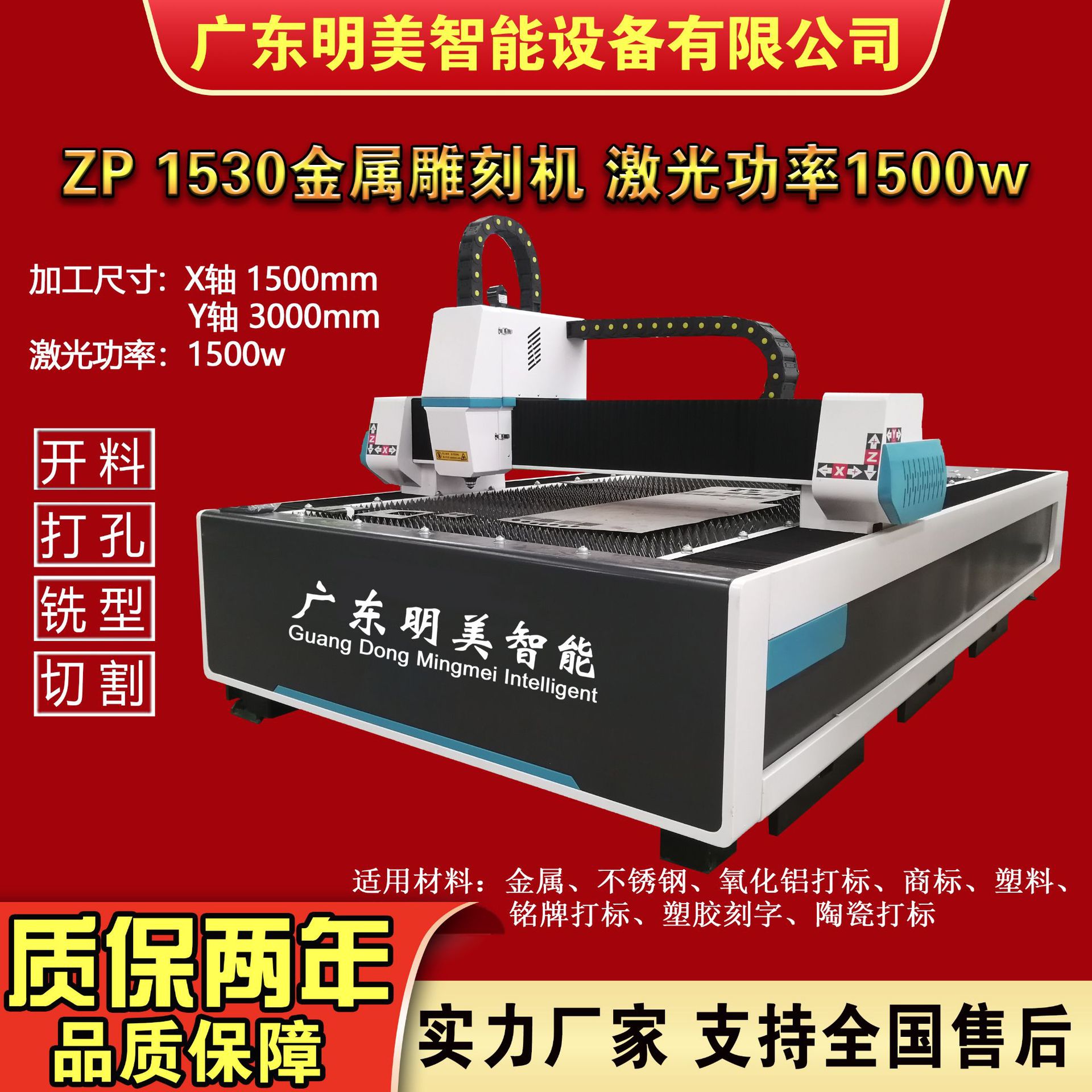 加工范围1.5米*3米 1500W 金属切割机 (可加工金属)