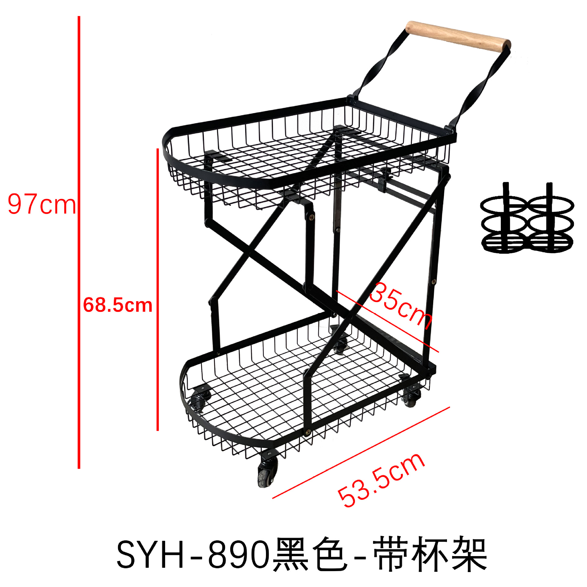 890-黑色手推车【带杯架】