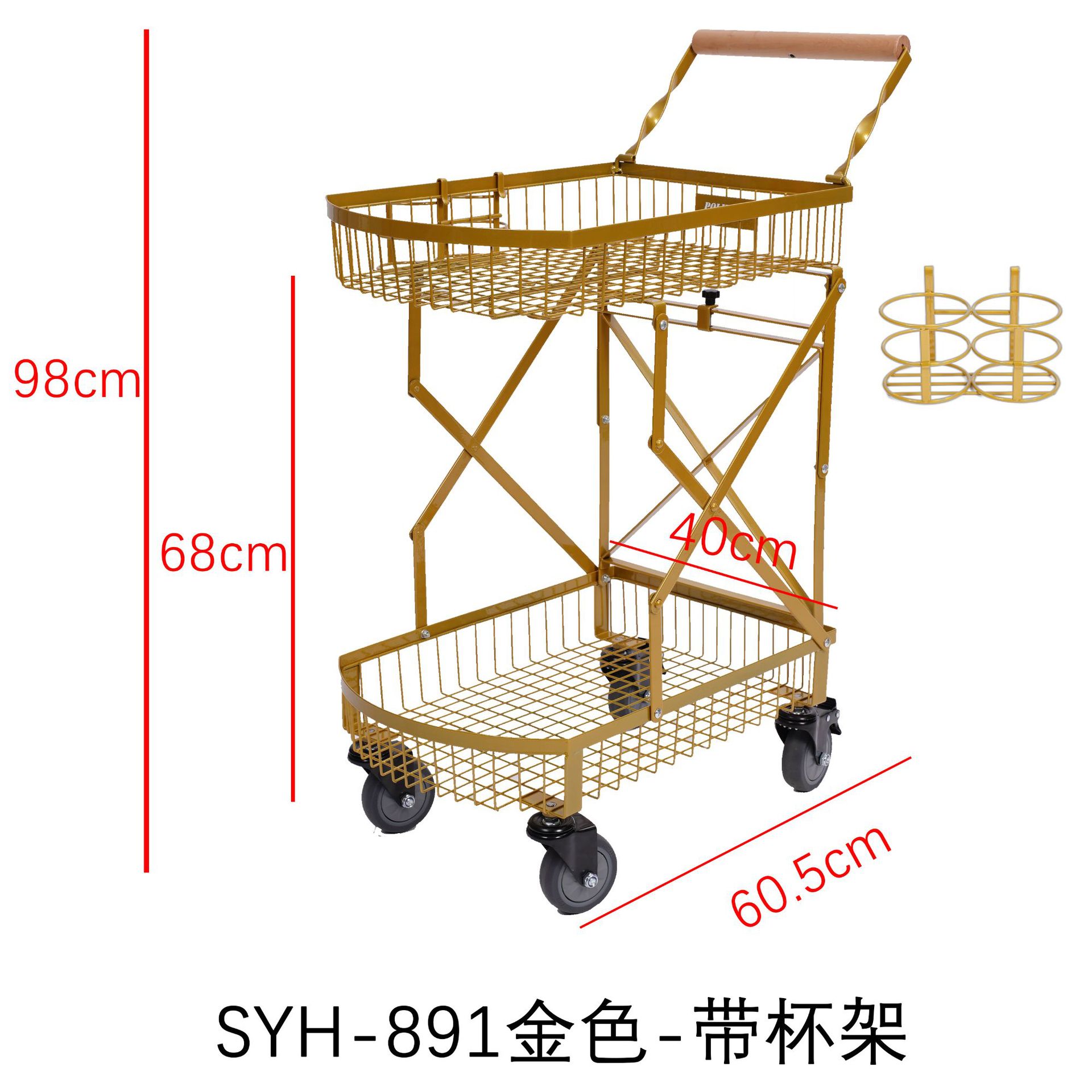 891-金色手推车【带杯架】