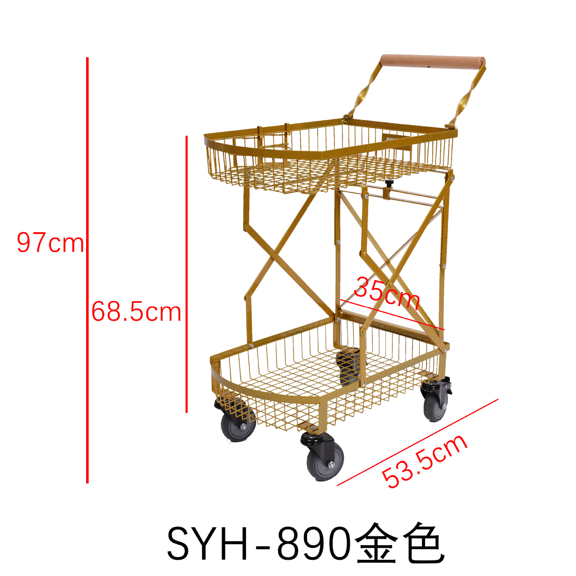 890-金色手推车【带杯架】
